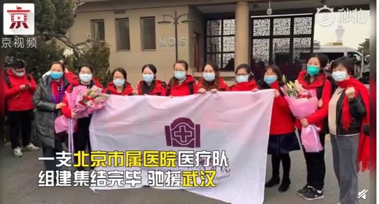 1 月 27 日,北京首都国际机场,一支北京市属医院医疗队组建集结完毕,驰援武汉。 这支医疗队由 136 人组成,全部来自北京市属各三甲医院。