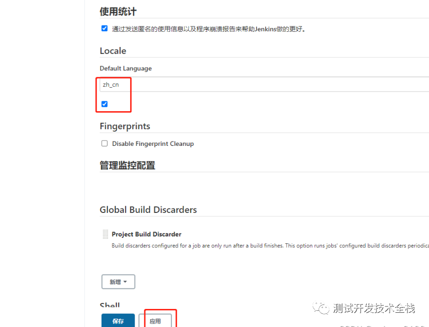 进入系统管理 Manage Jenkins > Configure System,设置 Language 为 zh_cn,应用后刷新
