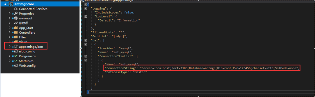 导入 db 成功后在项目配置文件里面修改成正确的 db 链接字符串