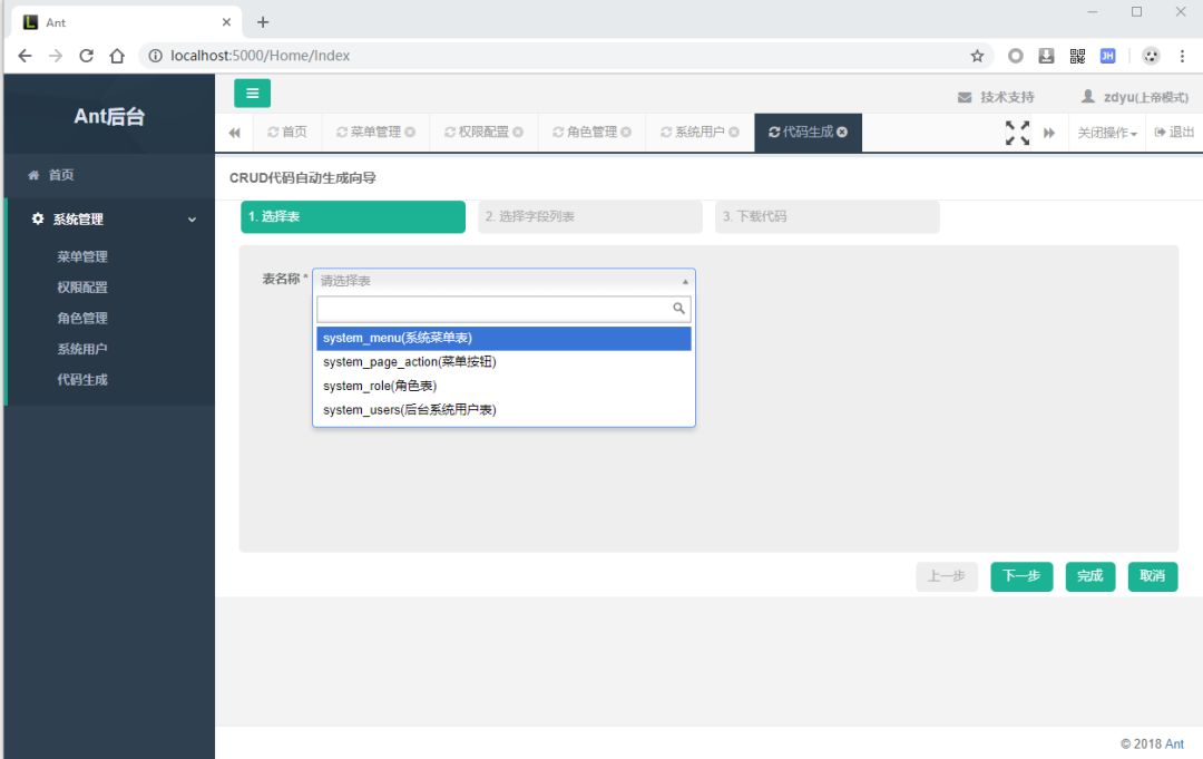 基于.NET Core 2.0 MVC 开发的快速搭建具有如下特色的后台管理系统