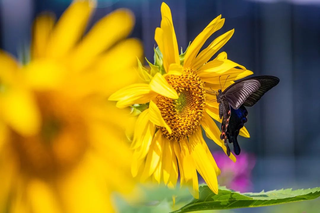 当金黄的向日葵遇上火红的醉蝶花